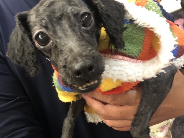 エコー検査済み フィラリア - 避妊手術済み ワクチン接種済み 検便異常無し フロントライン投薬 ドロンタール投薬 疥癬予防薬投与 宮崎の団体、咲桃虎様の、多頭飼育崩壊の劣悪繁殖場から150匹レスキューの案件に協力。一緒に仲間入りした6人のウチの一人です。 『テディ』名前の通り、小さな可愛い小熊のようです。 歯も数本程残っている状態です。今までの飼育環境から皮膚の状態はよくありませんが、これからは環境も変わり、少しずつきれいになります! 今までの生活が信じられない程、人間への警戒心もなく常に寄り添ってくれます。人懐っこい、愛嬌良しの甘え上手の可愛い子です。 犬とも猫ともフレンドリーに過ごせます。 この子がこの子らしく元気で楽しく過ごしていける明るいおうちをお待ちしています。